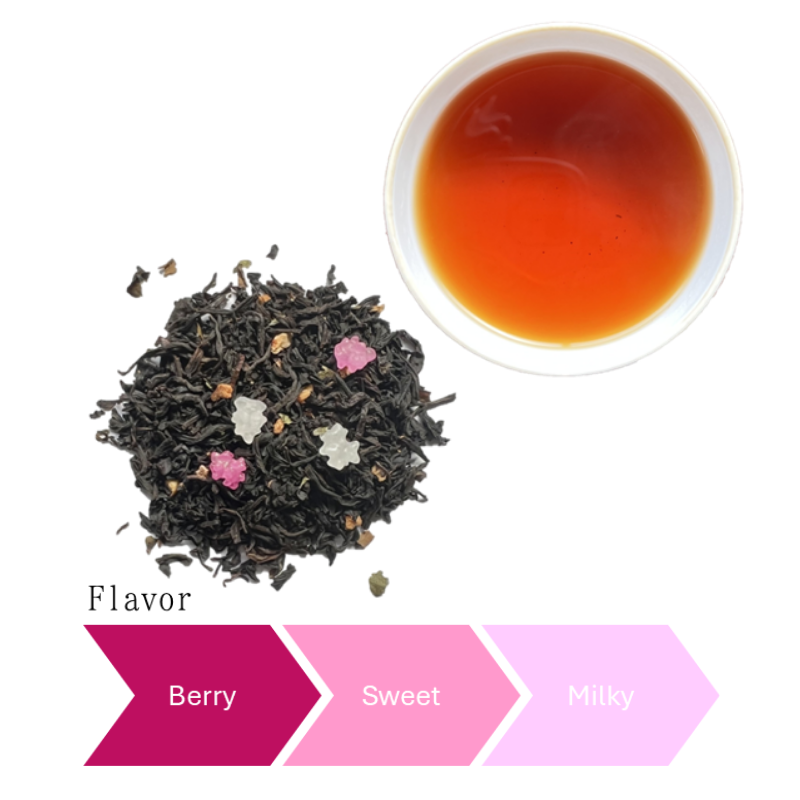 一口含むと、トップにはラズベリーやストロベリーの赤い果実の甘酸っぱさが広がり、続いて蜂蜜を思わせる甘い香りがやさしく包み込みます。ラストには、キャラメルのリッチでミルキー香りに包まれ、贅沢な余韻を演出します。渋みは非常に穏やかで、茶葉の甘みも存分に感じ取れます。
