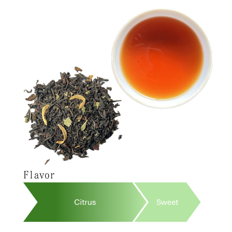 中国のキーマンを基調とし、インド(ダージリン中国種)とスリランカ(ヌワラエリヤ)の紅茶の名産地三か国の茶葉を贅沢にブレンド。そこに天然のベルガモットオイルと数種の柑橘フレーバーを掛け合わせることで、ベルガモットの風味に深い奥行きがでるように仕上げました。